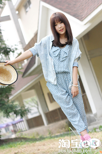 就是好喜欢这条连体裤,可爱的白色波点,加上浅蓝底色,