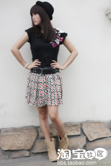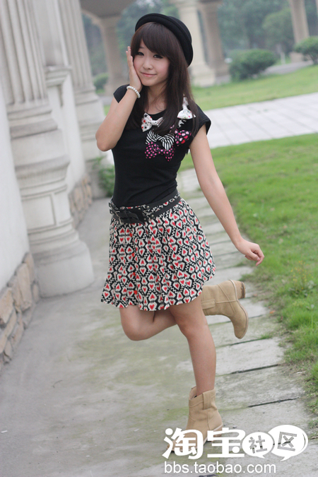 配上可爱的心形图案的裙子,即好看又显瘦了,一举两得!