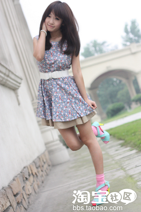 主要是胸前和背后的系绳部分,把腰身显细了,再配上三层的蛋糕裙摆,整体视觉上就在裙摆和腰身的绳子上了。