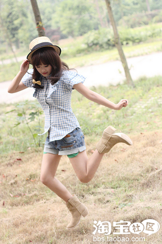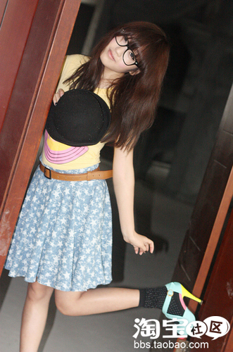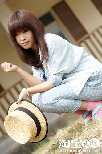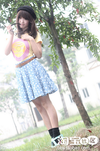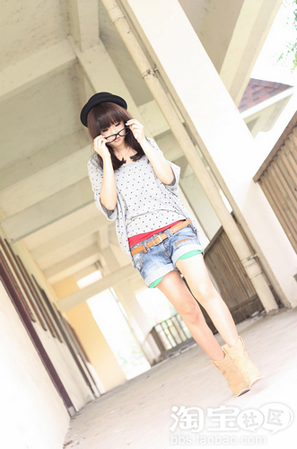 店主确实有点肉肉的哦!而且表情有点不自然,不过穿衣搭配确定很有个性,,