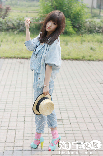 又是一款韩国味十足的牛仔连体裤。没办法,我就是喜欢那种休闲随意,又不是甜美个性的感觉。
