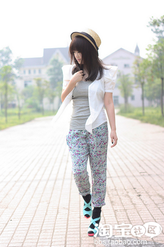 有点居家裤的味道,但是又比居家裤有型得多,版型和今年大热的哈伦裤型差不多。