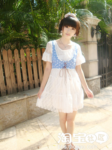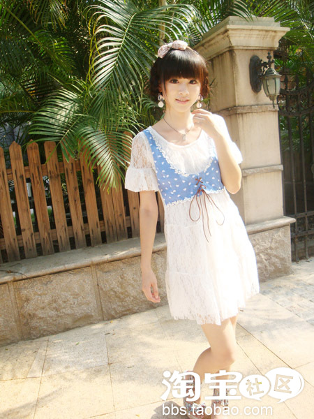 蕾丝连衣裙让人感觉很仙,单单白色的裙子就太单调了,加个小马甲装饰一下,是不是马上就不一样了呢?其实,是连体的哦,是假两件套呢