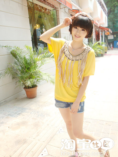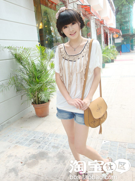 小室最喜欢穿T恤啦,很凉快又方便,不需要什么复杂搭配,直接搭个小热裤便可以了。MM们觉得T恤太普通了吗?看看下面这款哦,有迷人的流苏呢,突然觉得,T恤也不简单了吧?哈哈