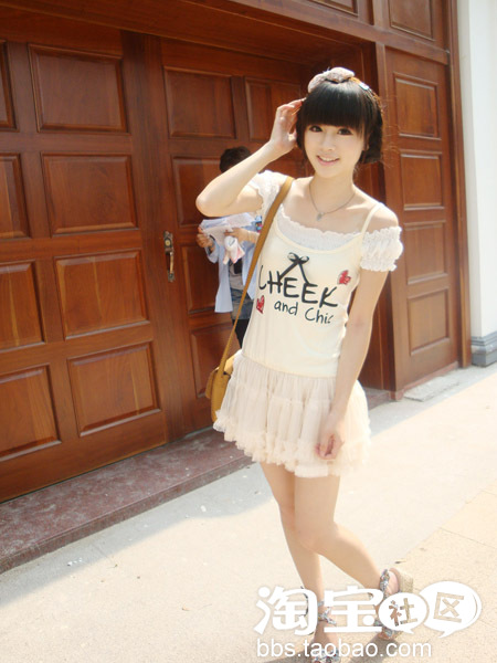 如果MM觉得露出肩膀不是很好 还可以在里面加个打底衫