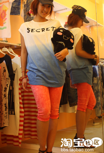 荧光的粉红色也很靓丽,穿上短短的热裤,