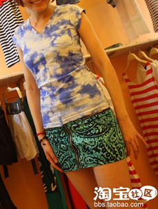 蓝白的蜡染T恤,就像晴晴的蓝天和白云