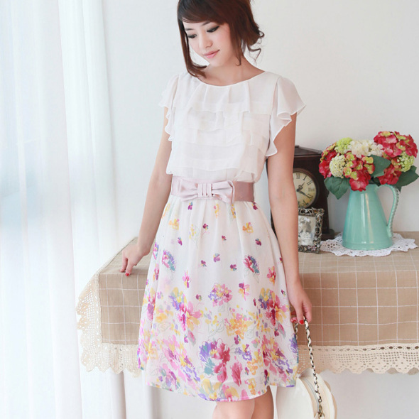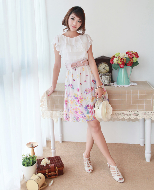 上身雪纺加荷叶边蝴蝶结的,不但让胸型变的唯美更彰显女性的柔美感~