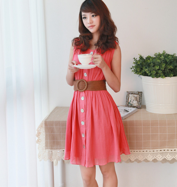 这淡淡的西瓜红,这一颗颗的白色扣子,瞬间温婉的气息应运而生