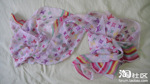 1、粉色LV logo丝巾,轻、薄、软、滑是它的特点,当初被它明亮艳丽的色彩降服了,于是赶快下手。