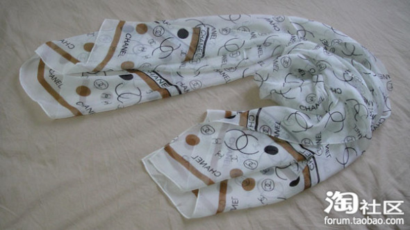 8、白色链条柔绢纱丝巾,实物颜色没这么白,有点奶黄