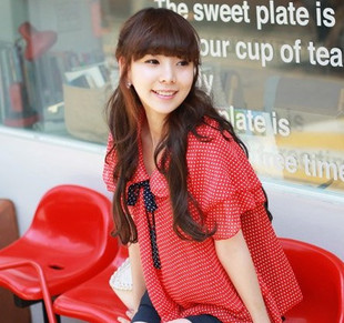 一件 红色圆点 雪纺衫 可以透出一分甜美