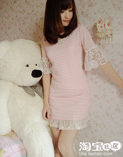 粉红+白蕾丝的拼接,甜美感女孩必备哦