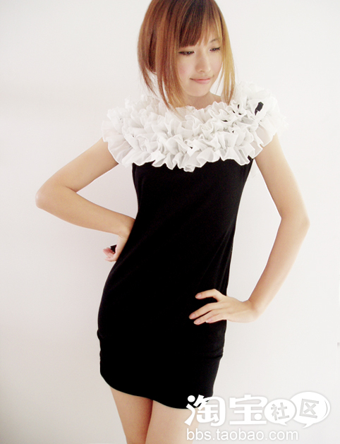 黑白相间的修身连衣裙,个性鲜明,穿出超模范儿。塑造女性化的身段,将妩媚的一面表露无遗。领口的雪糕设计,甜美而性感