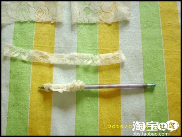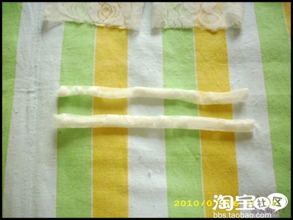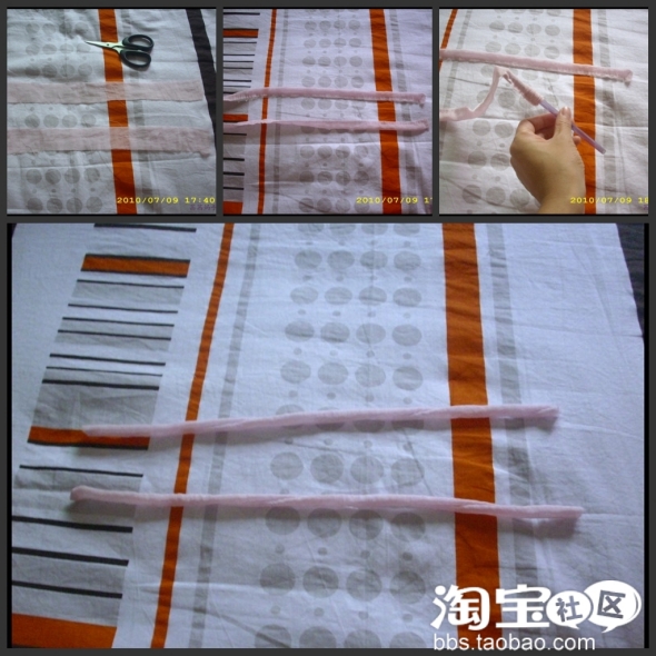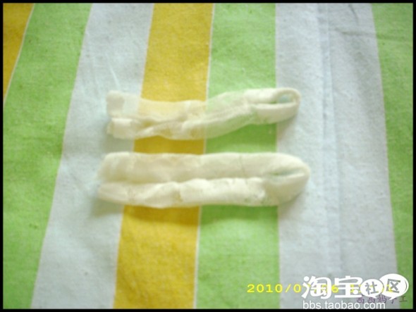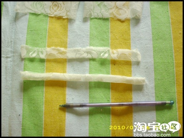 剪二条下来,对折缝好,借用一支笔杆翻过来,二条腰带好了
