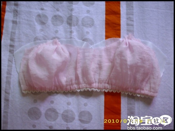 把缝好的椭圆连在肩带上 就成了小飞袖