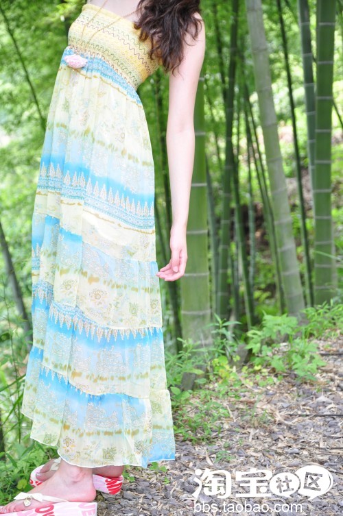 今年流行长裙,我也上了一款,很夏天很海风的感觉哦~如果在海边觉得太凉的话,建议搭一件小开衫即可~价格实惠,不要错过啦~妹妹说第二张这样看着太傻啦~呵呵~那就先娱乐下大众吧~
