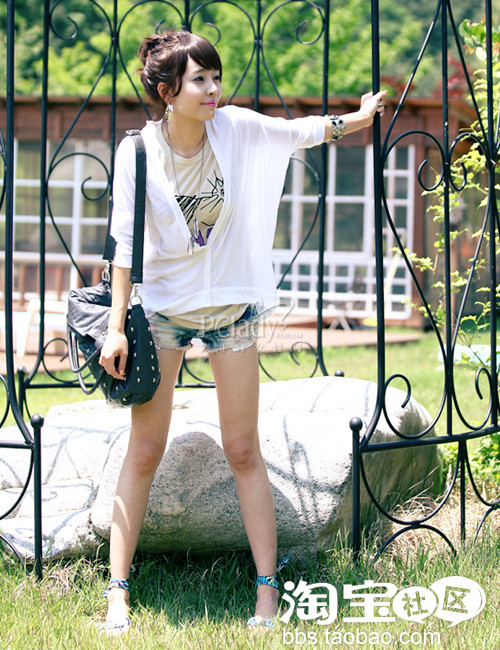 时尚点评:T搭牛仔热裤,你仍旧觉得不够个性,那么宽松的罩衫可以增加个性度哦。这样的罩衫材质轻薄,蝙蝠袖设计,即使和T叠穿,也不会觉得闷热,着实是夏季混搭的好选择。