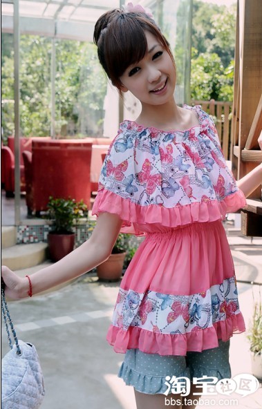 轻柔的面料慵懒的上身,早已掩饰了胸部的线条,大大的浪漫的露肩