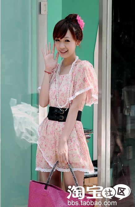 搭配腰封的时候,上身才能蓬蓬,才能掩饰胸部的无奈,如果是棉质的