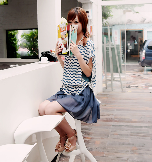 简单的韩式韵味的T+海魂条纹包屁股的裙裙