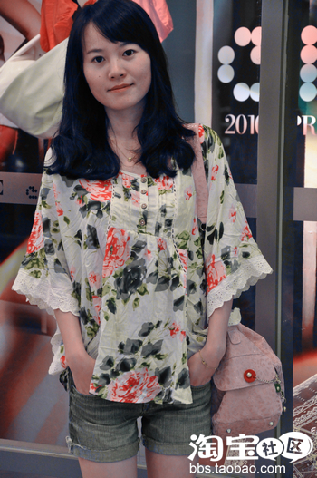 这件大花朵的蝙蝠衫穿上极像一只花蝴蝶
