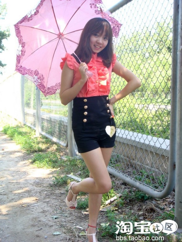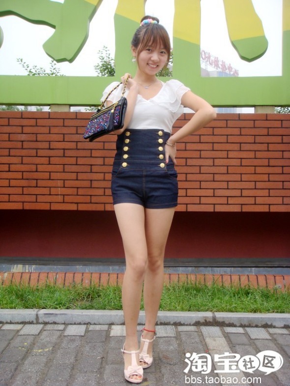 重点:高腰短裤视觉上把腰围提高,拉长美腿。