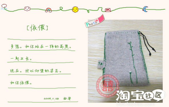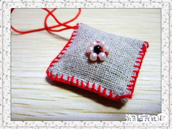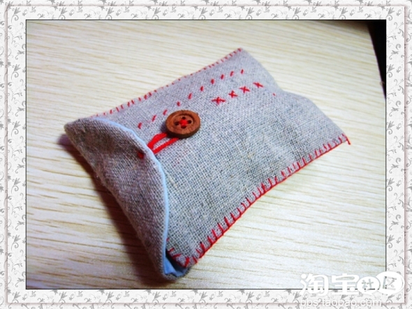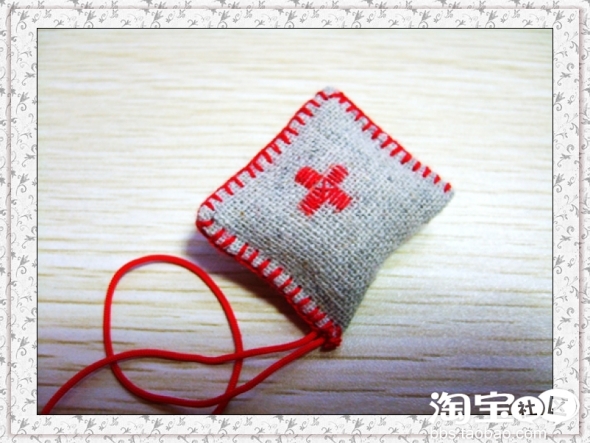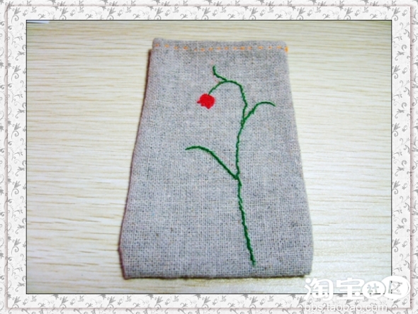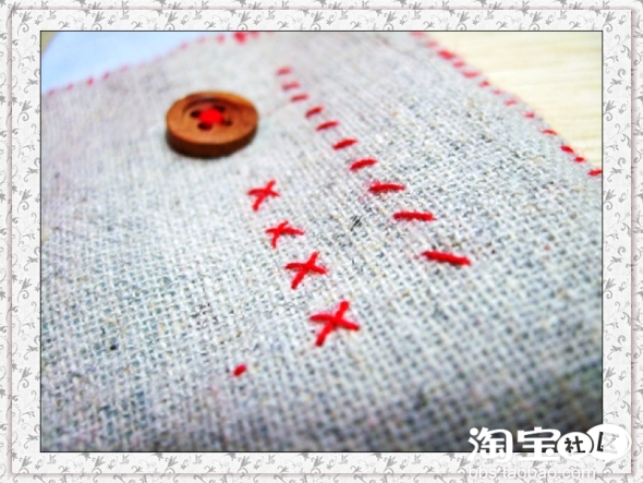 耳机收纳包。亚麻的。配大红色的线很是出彩啊~~~