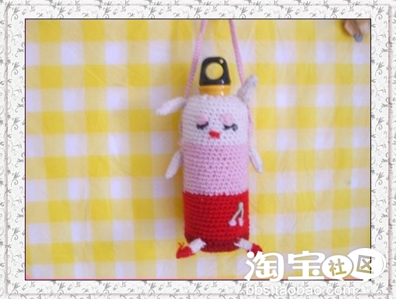 这个。这个可爱吧~!可以装水壶的哦~~~。是毛线钩哒。这个很久了。被我翻出来了、