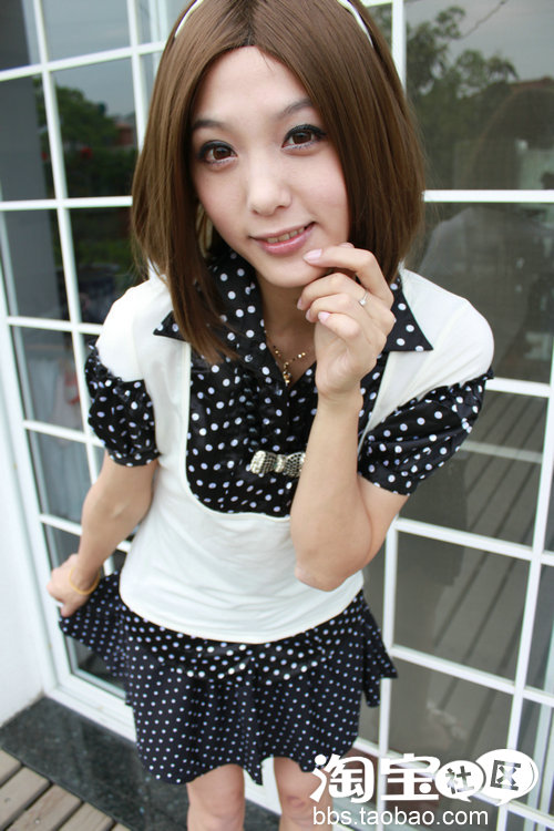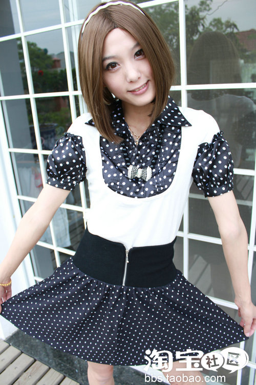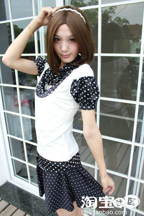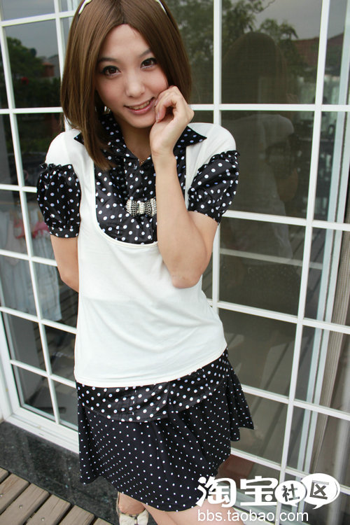 不错,很漂亮哦,顶下~9.其实第一眼看那个点点的短袖的时候,感觉挺普通的呢,但是楼主身材很好,人又漂亮,一穿就不一样拉,上身效果还不错,下面的裙子是我喜欢的风格,可爱,淑女,呵呵!!!美哦