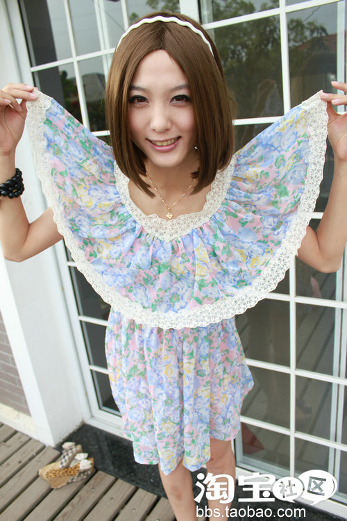 碎花的设计再加上蕾丝搂空就显得错落有秩哦