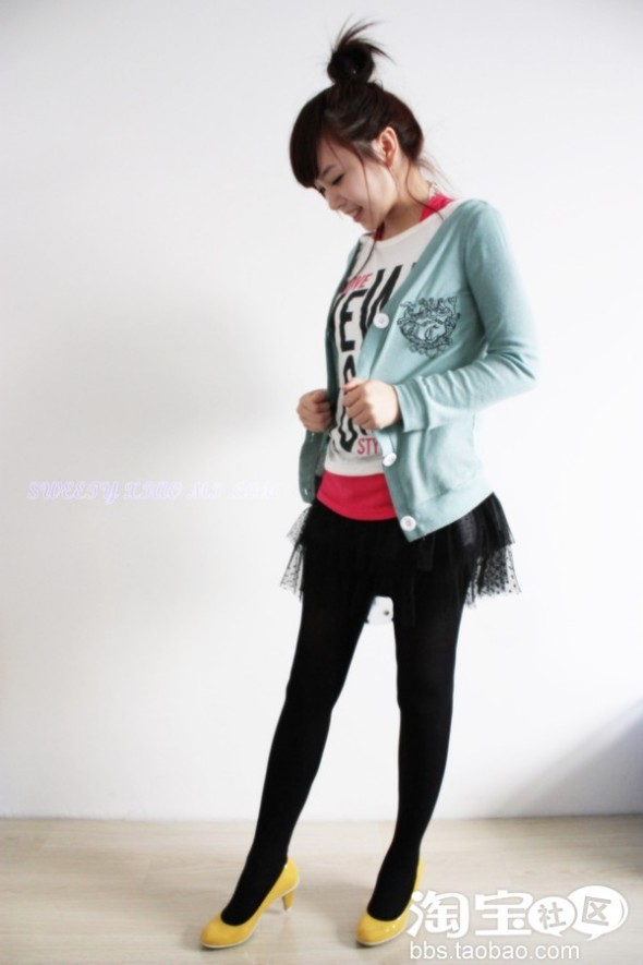 牛仔短裤换成黑色雪纺蓬蓬裙