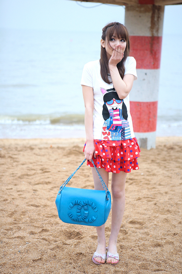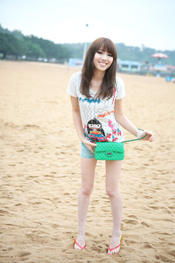 哼 偶一会就仍掉它 享受一下海浪打在脚上的感觉