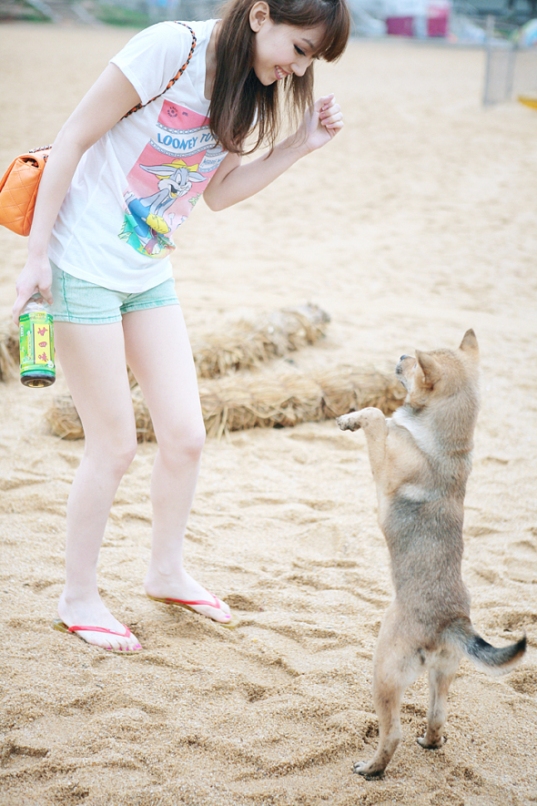 不知道这个叫卡奇的小狗是喜欢我呢 还是喜欢我t恤上的兔子呢