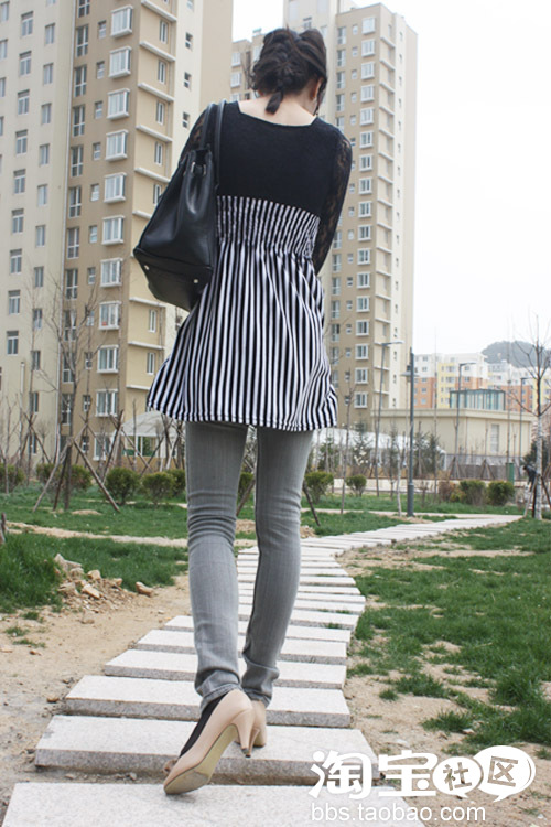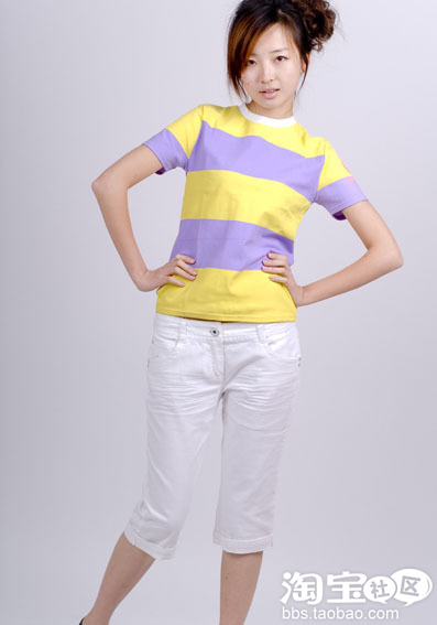 搭配宽大的横条纹的短袖真的是简单大方哦