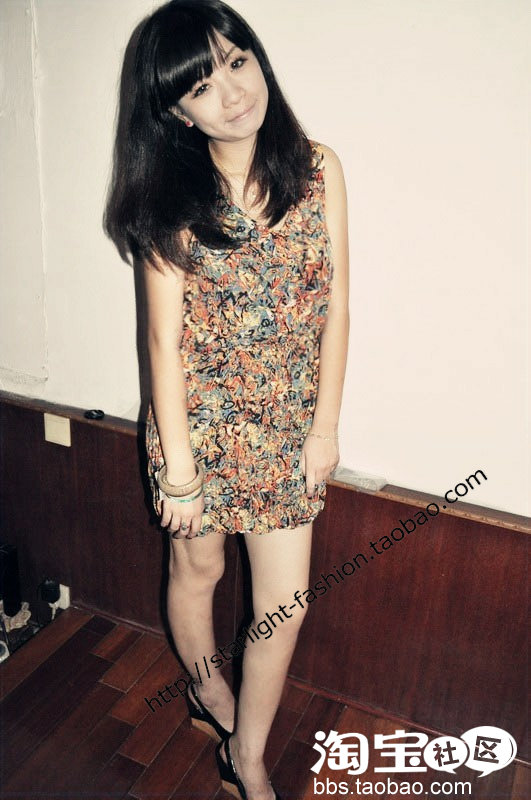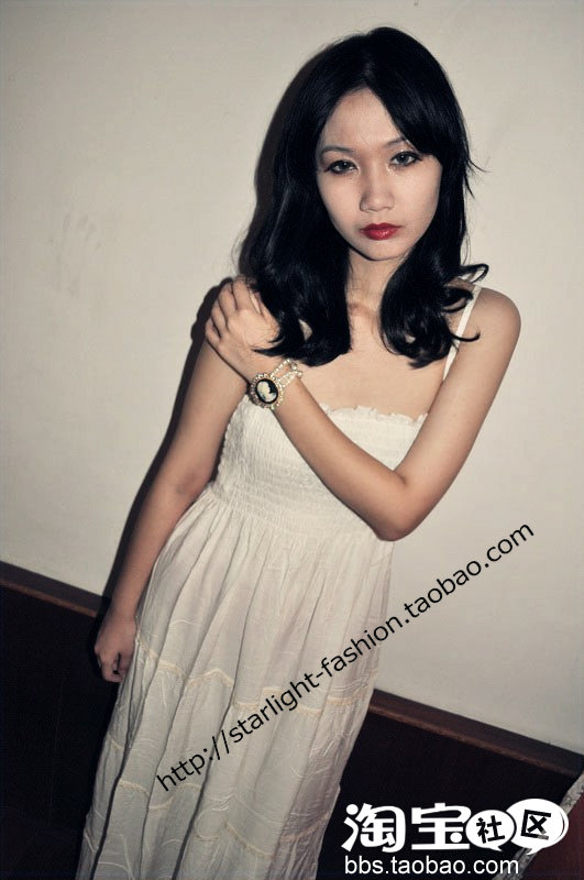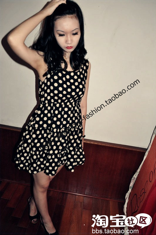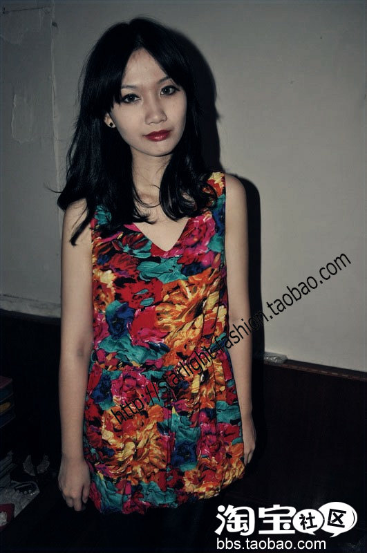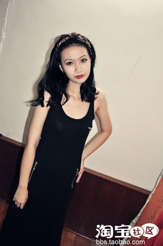 因为本身黑色碎花和浓妆不合称,简简单单化淡妆就OK!!