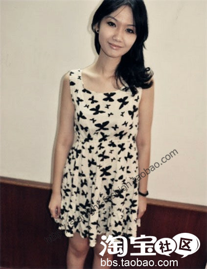 所以我决定败上这条蝴蝶印花连衣裙 装可爱去!