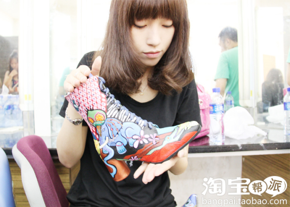 节目中的手绘鞋 大黄真是爱不释手 太PP了