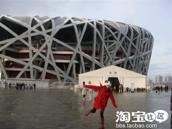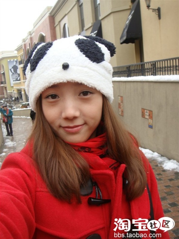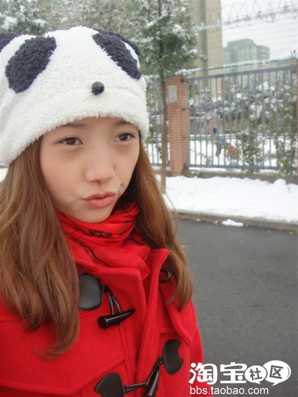 经典的来啦,熊猫大侠,哈哈。。。大红色大衣很配后面的雪景哦,牛皮靴真是冬天的大爱,还有我的蒙奇奇,去年在北京蓝色港湾