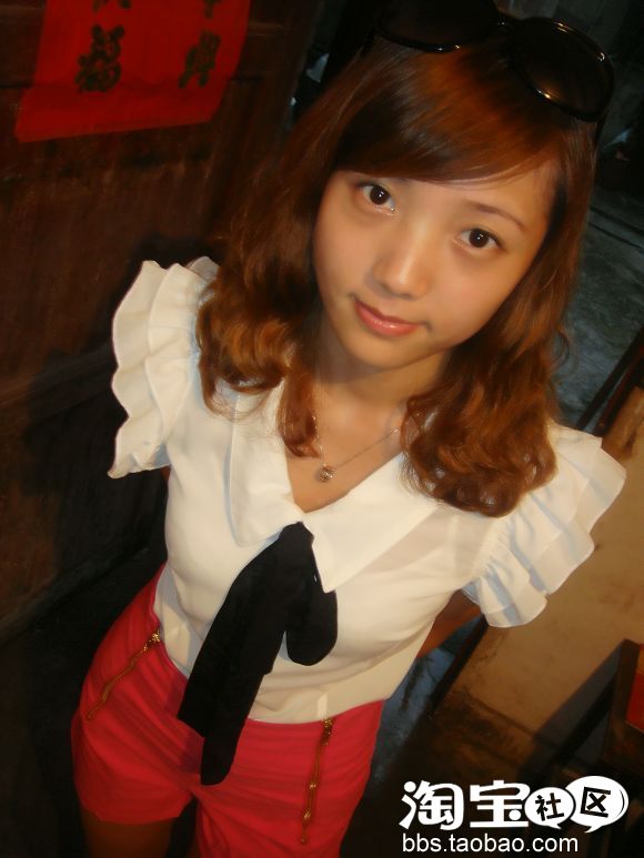 小飞袖的衬衫,雪纺的质地,很是喜欢,可以很甜美,也可以很欧美