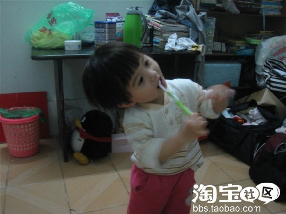 (那时的我看到大人刷牙,我也很想刷上一份)