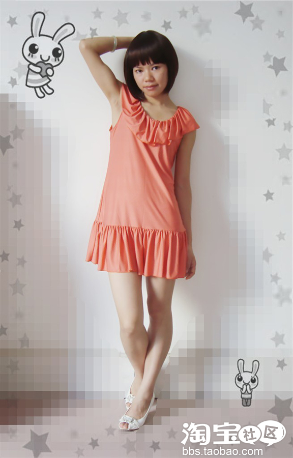 No.2 橘红色的大荷叶领连衣裙,可爱的公主风。(荷叶领的修饰跟裙摆下的褶皱增添了几分俏皮可爱的感觉。)