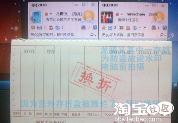 我3月份时的一个存折,拍了两份。有字迹说明是后添加的。