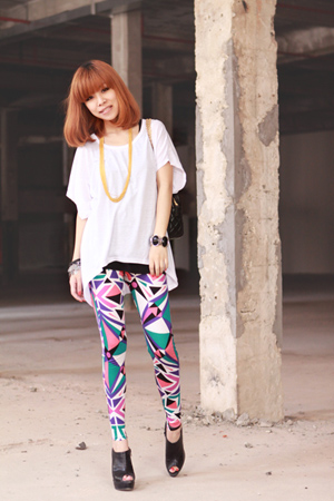 纯白T恤配几何打底裤