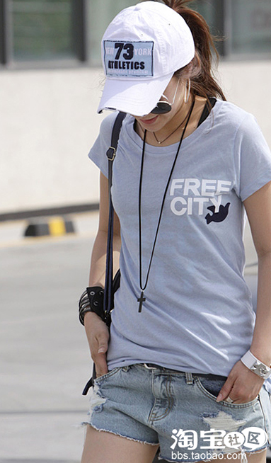 初一看到这张图片真的是好喜欢,那种随意漫步的恣态让人再也不想做宅女了,一下子照足它买了一顶帽子和一条牛仔短裤,可惜那件T恤至今还没有淘到,FREE CITY这个是精华哦。