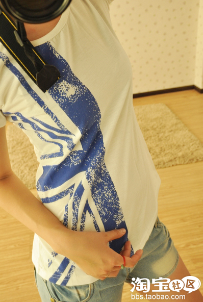 (二)小小欧美风 蓝色半边国旗印花 纯棉短袖T恤
