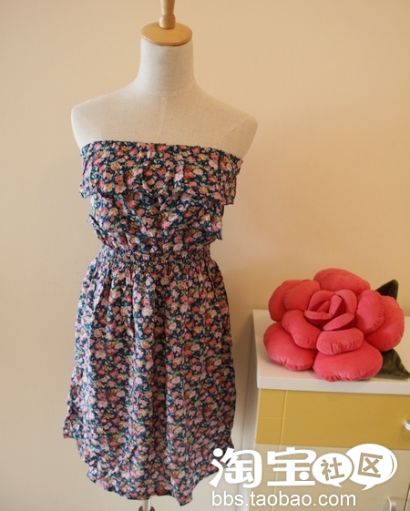 10.VIVI大热!超可爱 蓝色碎花 裹胸 纯棉 连衣裙