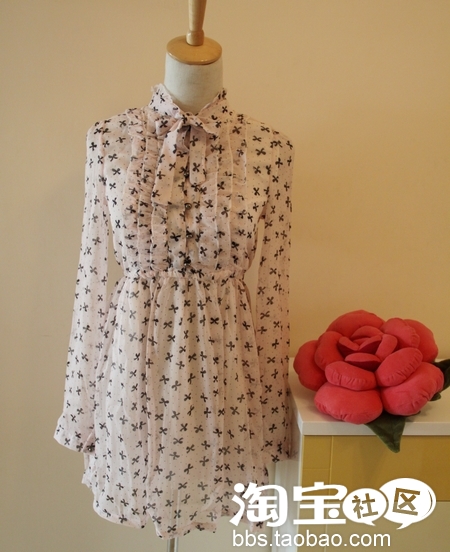 9.粉色 领口蝴蝶结 超美 雪纺连衣裙