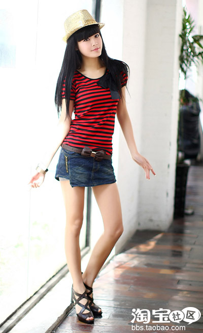 NO3:条纹蝴蝶T+牛仔小短裙裤