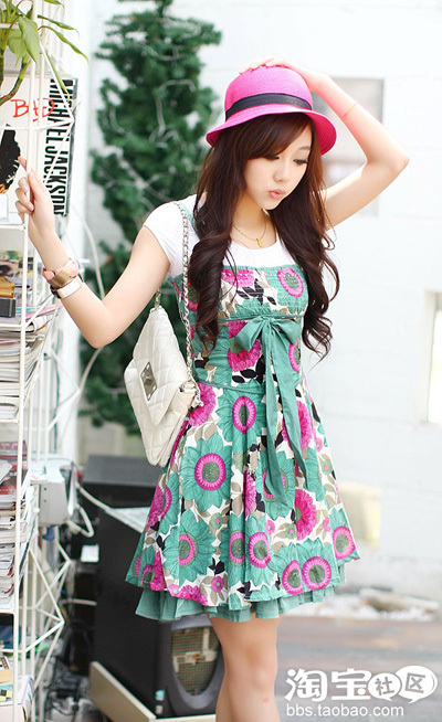 搭配解析:韩版收腰假2件扇摆连衣裙,此款裙裙的亮点主要注意腰围 ~ O_o